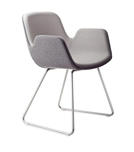 Materials: Steel rod sled base with powder coat or matte chrome finish. Seat in Baydur polymer, molded plywood, or fully upholstered.